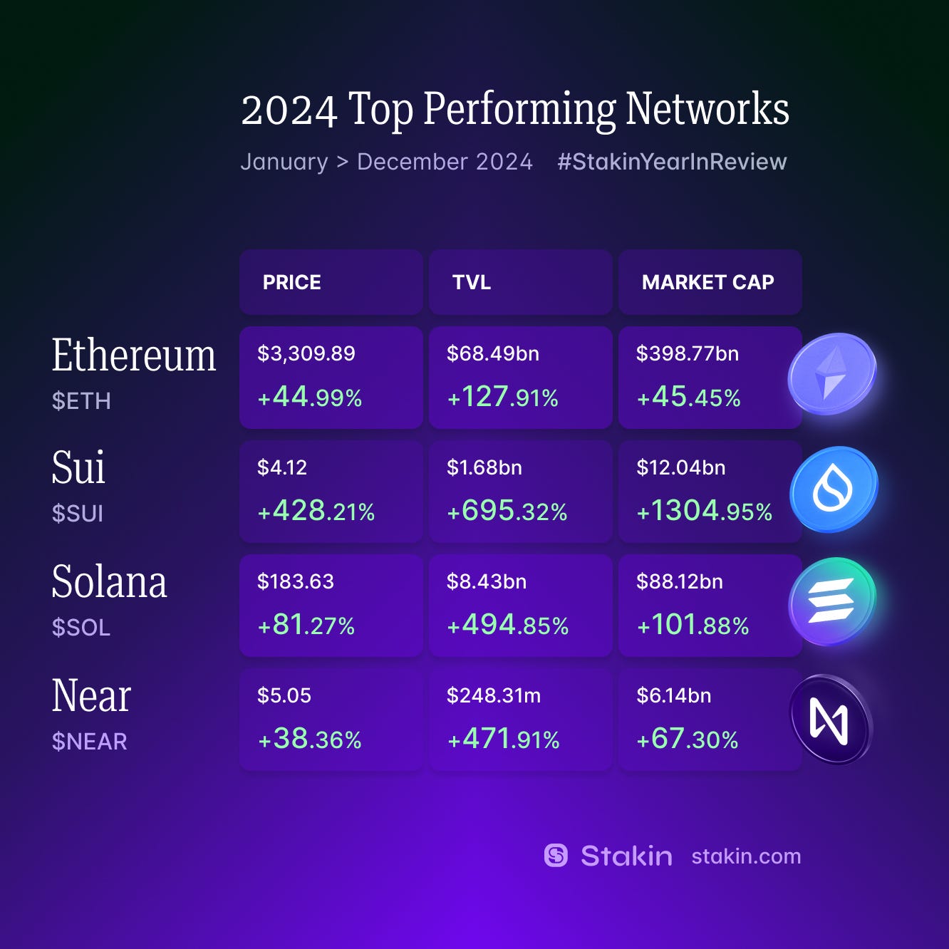 It was a great year for the blockchain ecosystem, with several new mainnet launches, new updates and an overall growth of the Web3 field. Here we showcase some of the Top Performing Networks of 2024: