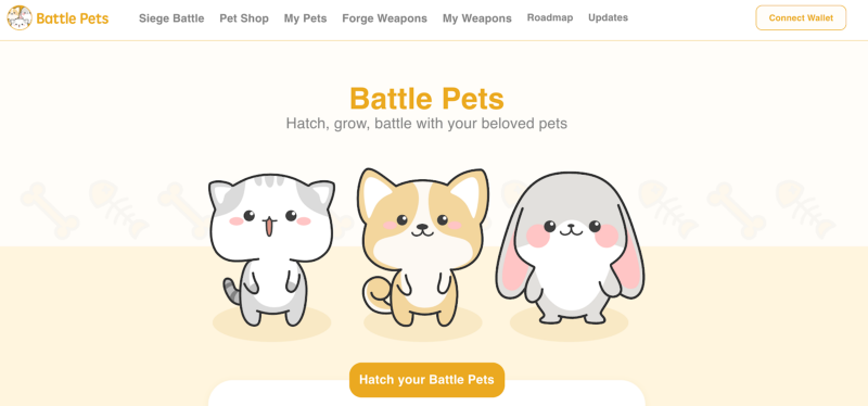 Battle Pets is a blockchain game about pets running on Binance Smart Chain. Each pet is an NFT(Non-fungible Token) which can be collected, nourished, and armed with weapons to battle with other pets.