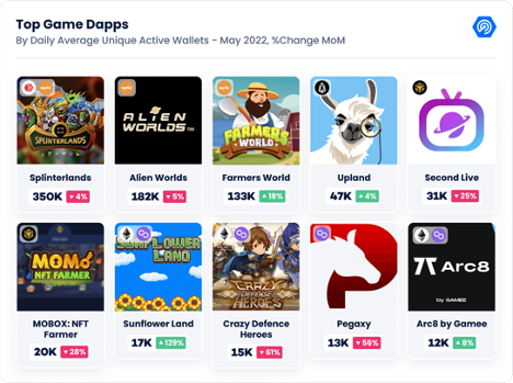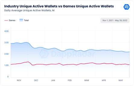 Blockchain gaming fiercely defies the bear market with 1.15 M daily Unique Active Wallets interacting with games like Sunflower Land, Axie Infinity, Alien Worlds, and more.