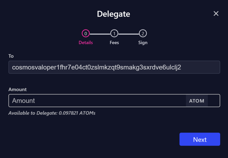 Simply click on the Delegate button and choose the amount you would like to delegate.