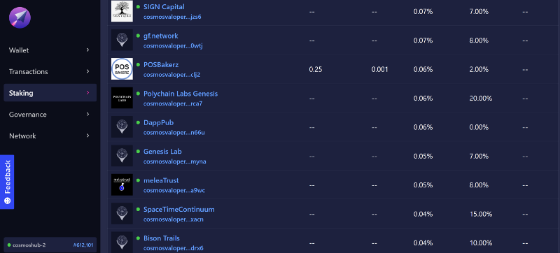 In this list, you will be able to find the different Cosmos validators including POS Bakerz.
