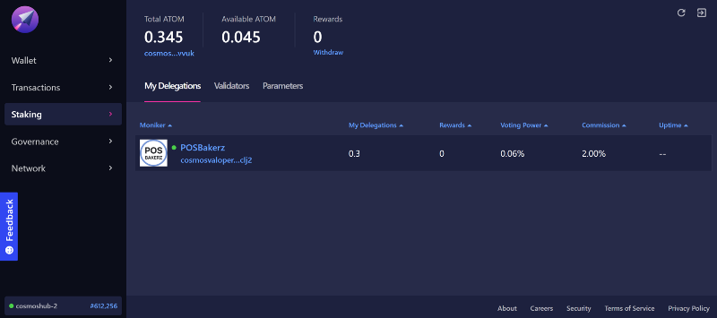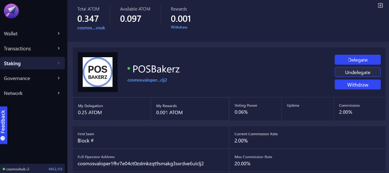 Choose POS Bakerz or the validator you would like to delegate to and this page will open.
