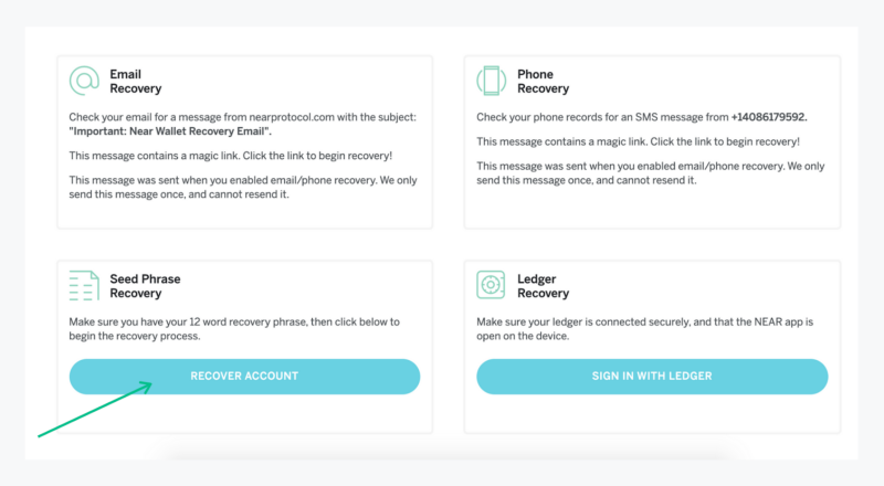 In case you already have a Mainnet Wallet you can also navigate to wallet.staging.near.org and select: “Access Your Account”. Then, choose your recovery method — we have chosen Seed Phrase Recovery, and select “Recover Account” (see image below).