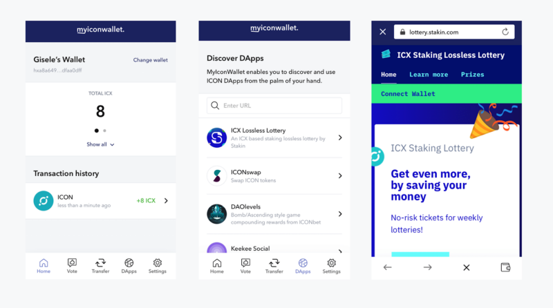 We’re very excited to be able to now also share with you this step-by-step guide to using our first ever DApp, the Stakin Lossless Lottery, with MyIconWallet. If you don’t own any $ICX, we’d recommend getting some since you will need them to buy lottery tickets.