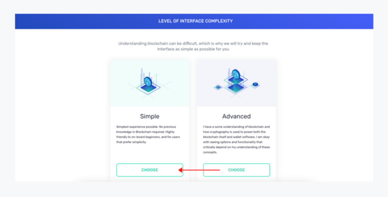 Now, you will have the option to use the simple or advanced version of the Yoroi Wallet. Select the option that best fits your needs. In this case, we will be using the “simple version”.