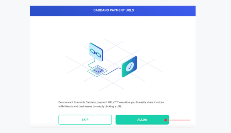 Click on “Choose” to continue. Next, allow or skip the option to let Cardano enable payment URLs. These URLs can be used to share info with your friend if you’d like to. Remember, Cardano or the Yoroi Wallet will never just share any of your data without your consent nor do they store it.