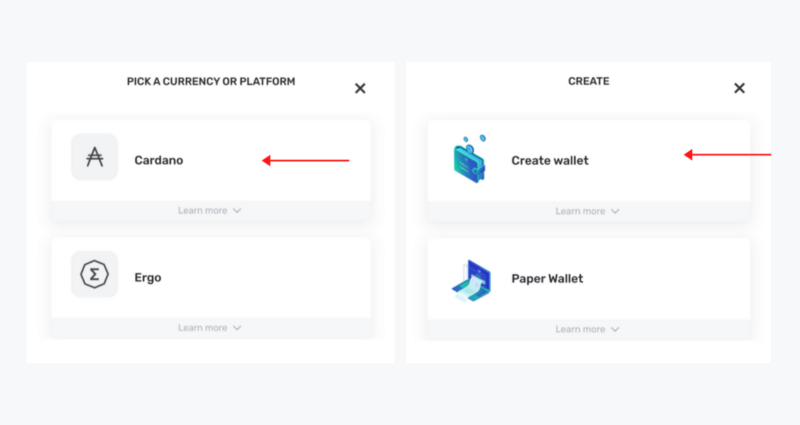 Select “Cardano” in the next pop-up. Then, select “Create Wallet” once again.