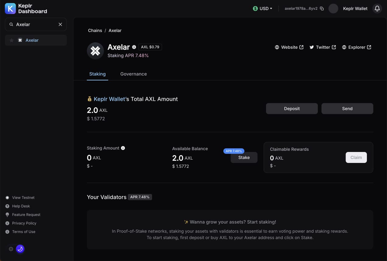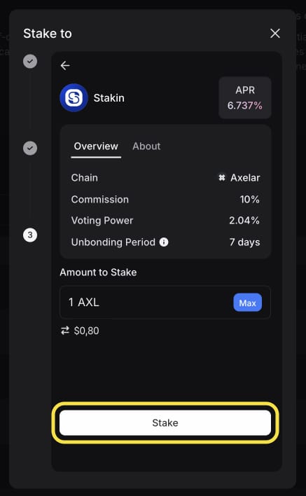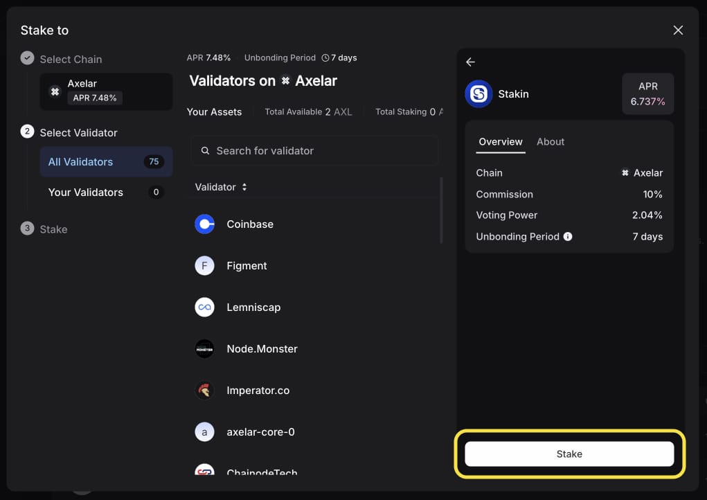 Congratulations! You’ve now successfully staked your $AXL and can start earning rewards.
