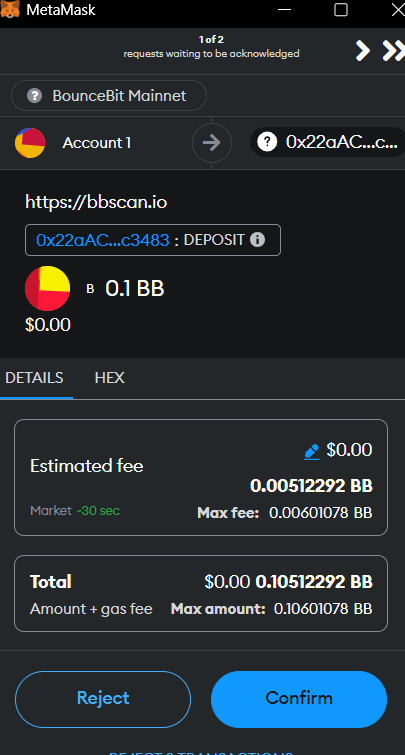 Before you proceed with staking BounceBit BB tokens, you first need to top up your Metamask wallet account. You can do so by purchasing or swapping existing tokens with BB tokens on a centralized or a decentralized exchange of your choice.