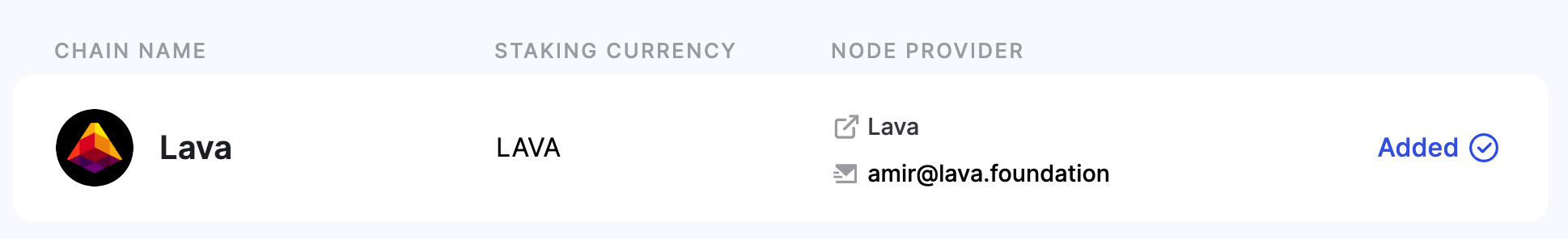- Click on the “Add to Keplr” button, and make sure to choose Lava, not the Lava Testnet.