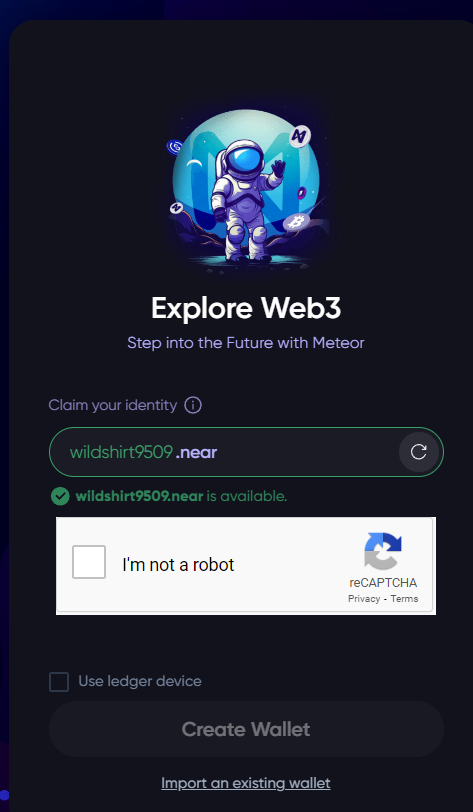 In the newly opened page, you will be prompted to choose a username for your wallet. You can use the suggested one, or a custom one, as long as it is available for claiming. Then click on “Create Wallet.”