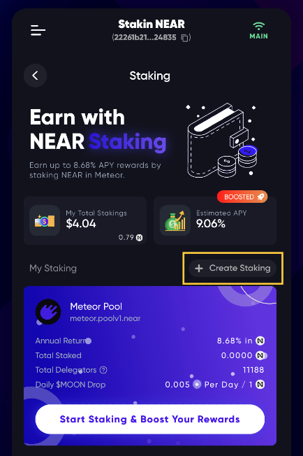 Next, click on “Create Staking” as shown in the preview below: