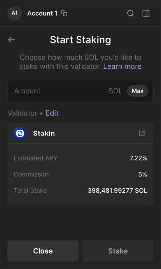 Now, to start staking, fill in the amount of $SOL that you’d like to delegate. Please note: for transaction purposes, you will still need to keep a small amount of $SOL in your wallet.