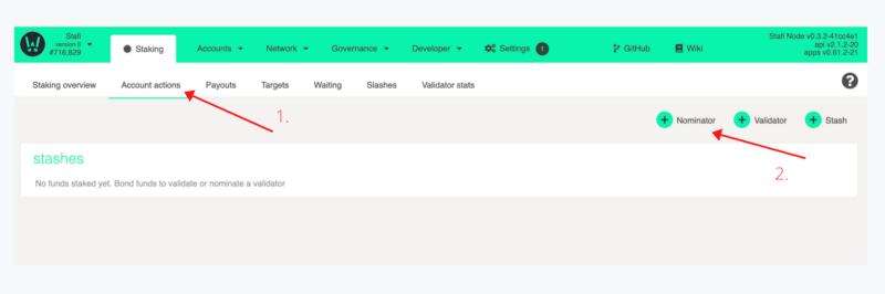 In the dashboard, select “network” in the top menu and then select “Staking”.