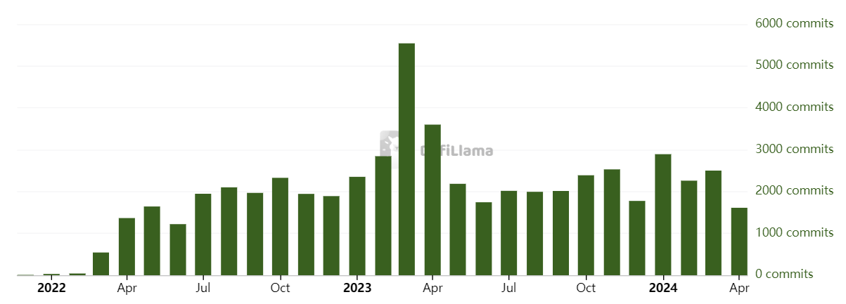 - Community Support: The expanding Sui community, encompassing developers and users, has created an environment that encourages the rapid development and improvement of DeFi projects. SUI features a thriving support of developers and a commendable number of total network commits.