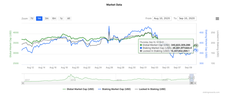 According to Stakingrewards, the total staking market cap is currently at $36.8 billion USD (see image below), and $19 billion is locked in staking. Keep in mind that when it comes to staking rewards, different digital assets offer a different result.