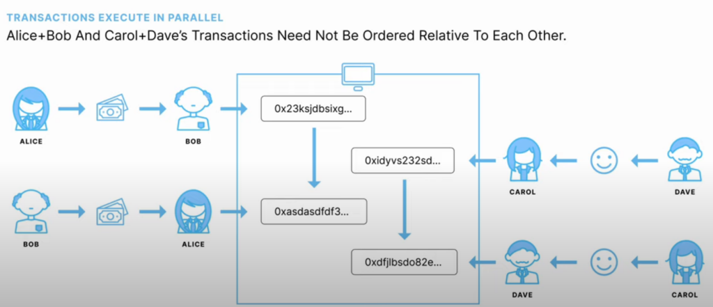 To go into greater detail on parallel execution, Sui has implemented a parallel transaction execution system, significantly boosting its transaction processing speeds. This system manages multiple network states concurrently while ensuring consistency in the final state across transactions.