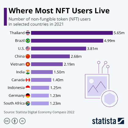Although NFTs have been around since 2014 with Quantum, they went mainstream in 2021 as a means to buy and sell digital artwork. Ever since, these digital assets have been trading like 17th-century Dutch Tulips, with a total market surpassing from $200 million in 2020 to $40 billion in 2021. NFTs have gained significant adoption among East and Southeast Asian countries, including Thailand, China, and Vietnam, according to the Statista Digital Economy Compass 2022. However, one question remains: are NFT’s overpriced digital art or a promising technology that could transform the way we live?