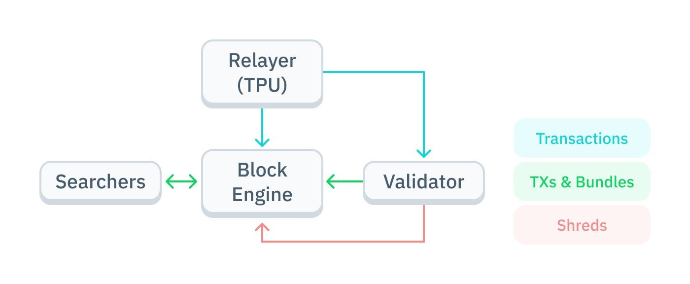 Jito-Solana manages communication with the Jito Relayer and other block engines. The first integration is with Jito Labs Block Engine, but more third-party solutions are available.